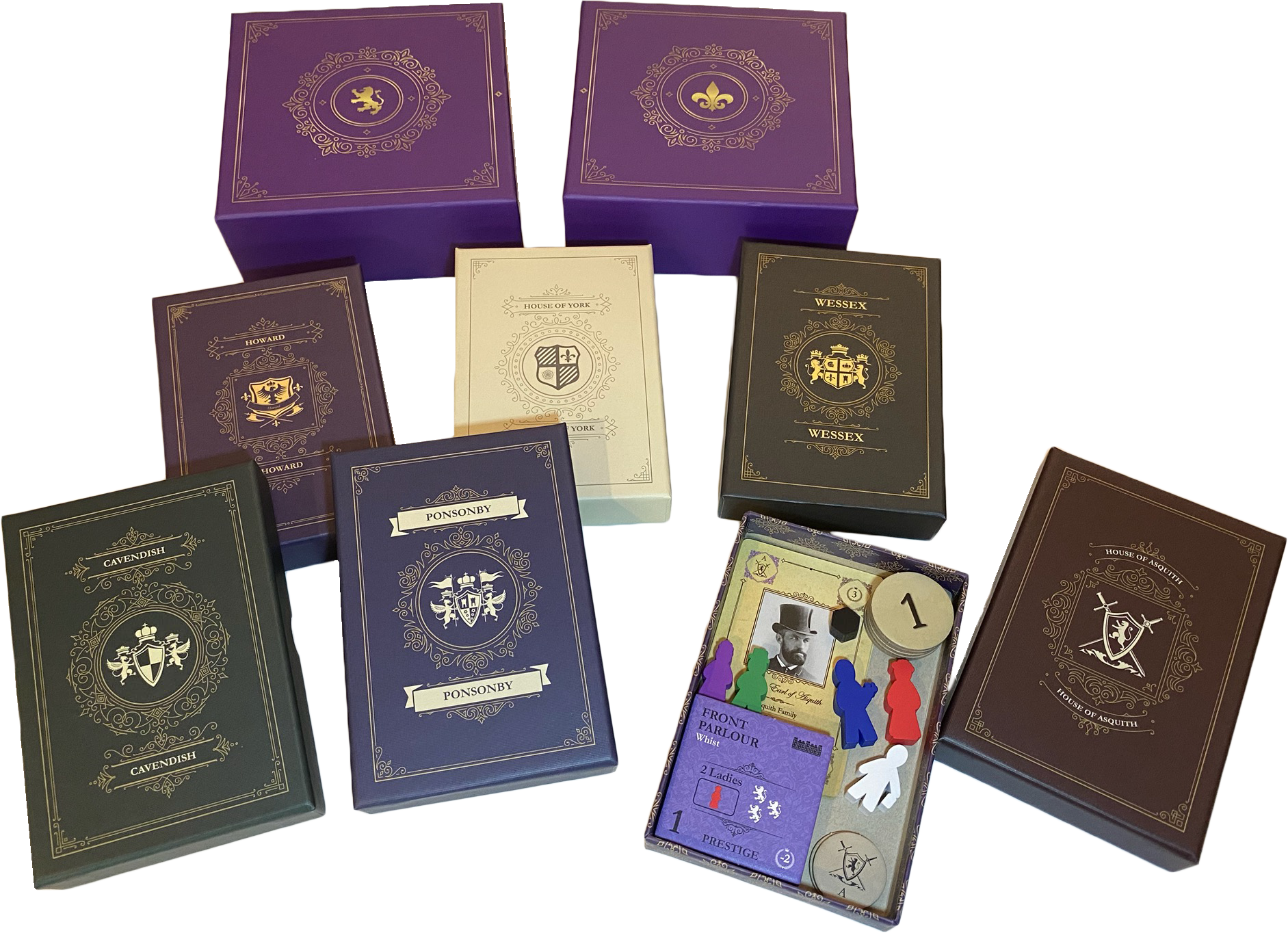 DH: The game leaned heavily on the characters but the game produced the characters. I developed the idea of a “gentry deck” and then faced the number one problem every small publisher faces: the cost of artwork. Those original cover images I have on my three books were about $500 apiece. So while my original thought was to use a J.M.W. Turner type of artist, who has an impressionist style, and have artistic renditions of people, I thought “how am I going to have $50,000 of art in this project?” Now I know a little bit about intellectual property, and photographs before 1929 are in the public domain. So I asked myself “are there pictures of people from Victorian England?” And once I dove into pictures from the 19th century, it came to life. Then I was confronted with creating their stories, so I would look into the publications of the “landed families” of 19th century England, and get names like Exeter, Whitlow, Cole, Thornhill. I’d say over half came out of the registers for English aristocracy and the other half came from either foreign music or a number I just picked out, like Churchill, Kent––there’s a Thatcher in there, an Eden––from Prime Ministers from recent times.